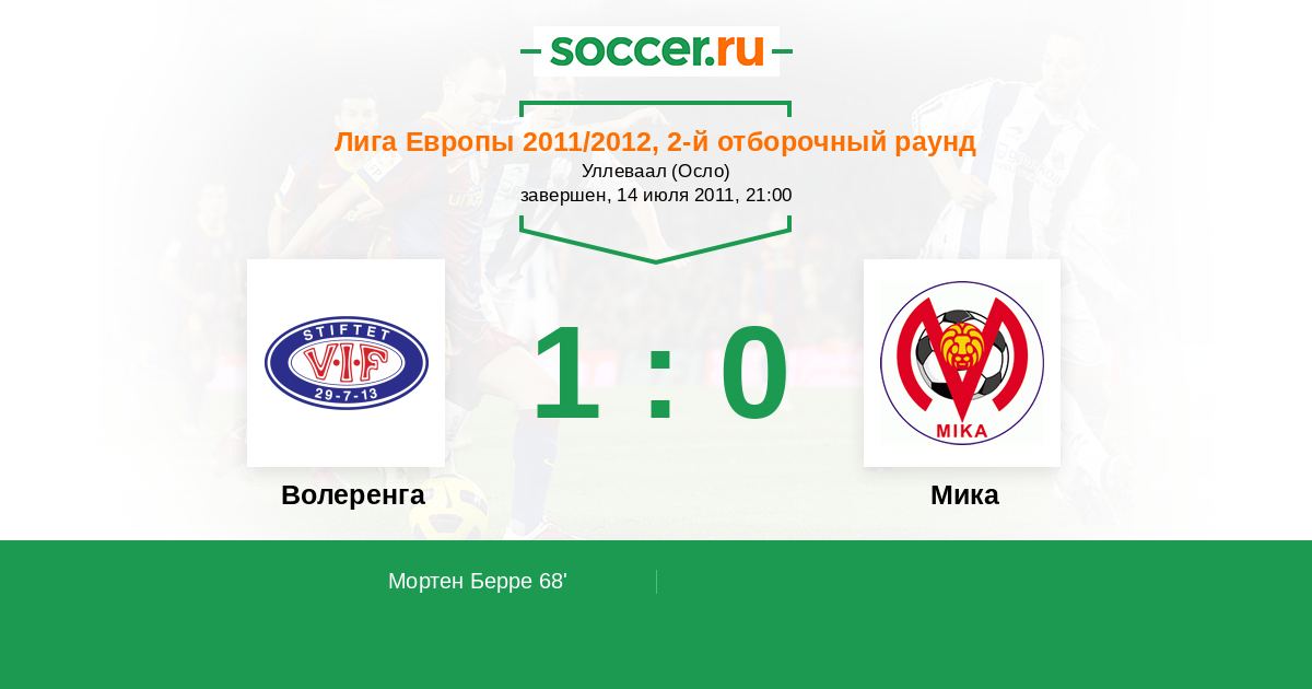Лига Европы 21.07.2011 Мика   0:1   Волеренга