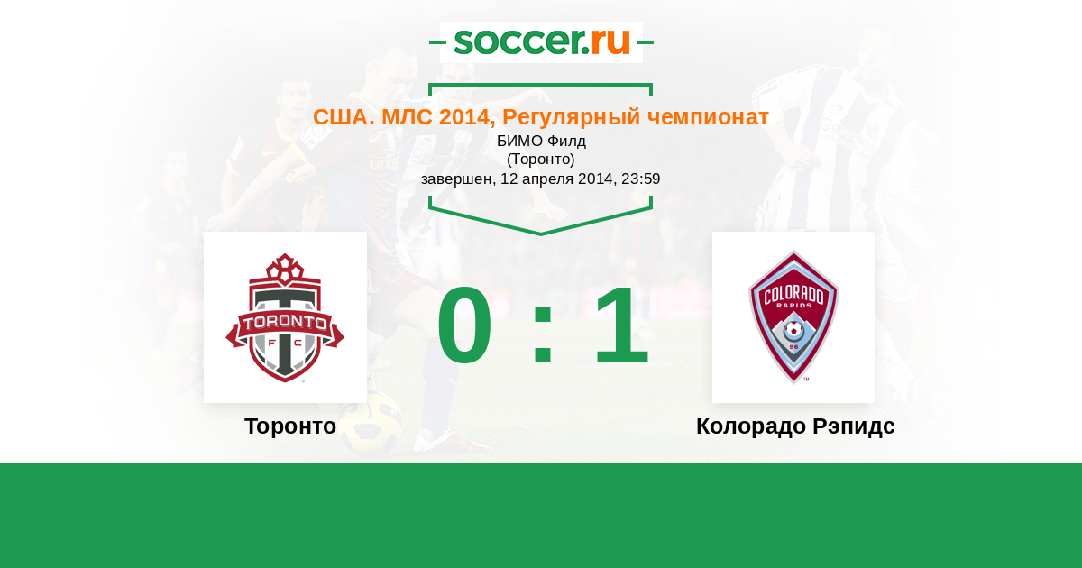США. МЛС 19.07.2012 Торонто Логотип футбольный клуб Торонто 2:1 Логотип футбольный клуб Колорадо Рэпидс (Денвер) Колорадо Рэпидс