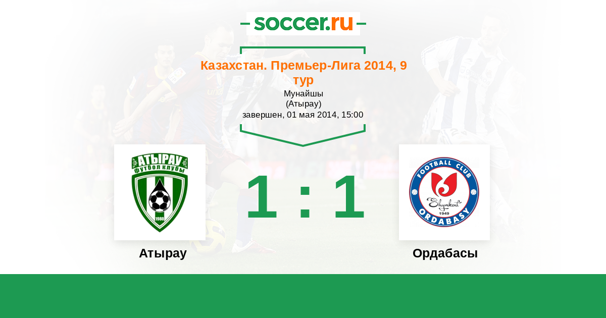 Казахстан. Премьер-лига 24.05.2015 Атырау Логотип футбольный клуб Атырау 1:1 Логотип футбольный клуб Ордабасы (Шымкент) Ордабасы