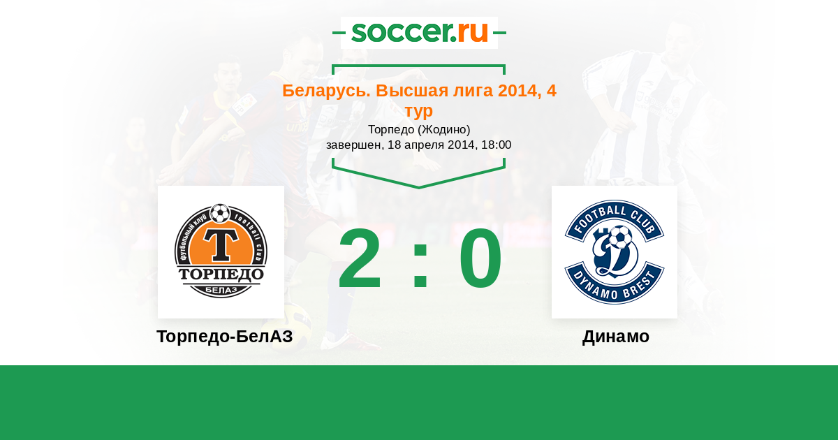 Беларусь. Высшая лига 11.04.2015 Торпедо-БелАЗ Логотип футбольный клуб Торпедо-БелАЗ (Жодино) 1:3 Логотип футбольный клуб Динамо (Брест) Динамо