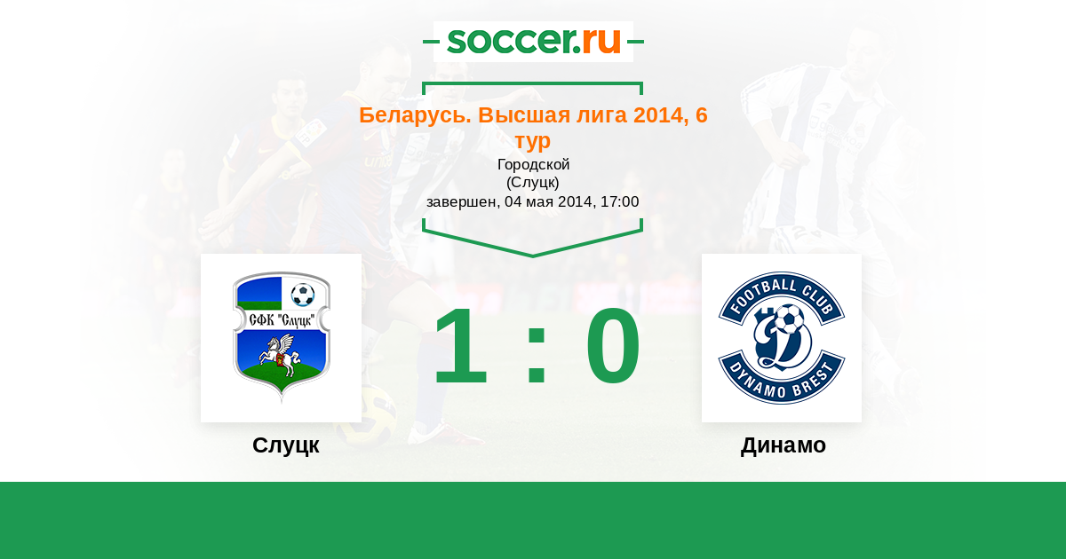 Беларусь. Высшая лига 13.07.2014 Динамо Логотип футбольный клуб Динамо (Брест) 2:1 Логотип футбольный клуб Слуцк Слуцк