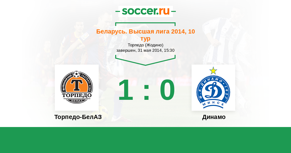 Беларусь. Высшая лига 17.08.2014 Динамо Логотип футбольный клуб Динамо (Минск) 0:0 Логотип футбольный клуб Торпедо-БелАЗ (Жодино) Торпедо-БелАЗ