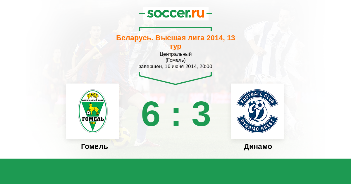 Беларусь. Высшая лига 06.04.2014 Динамо Логотип футбольный клуб Динамо (Брест) 2:0 Логотип футбольный клуб Гомель Гомель