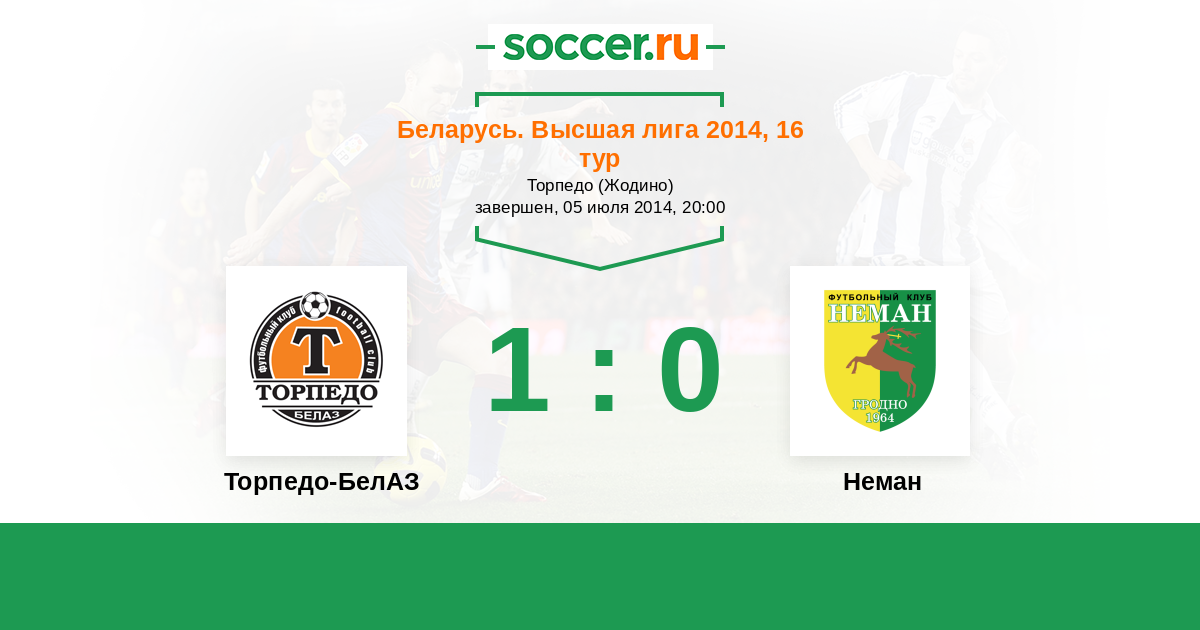 Беларусь. Высшая лига 26.04.2014 Неман Логотип футбольный клуб Неман (Гродно) 0:0 Логотип футбольный клуб Торпедо-БелАЗ (Жодино) Торпедо-БелАЗ