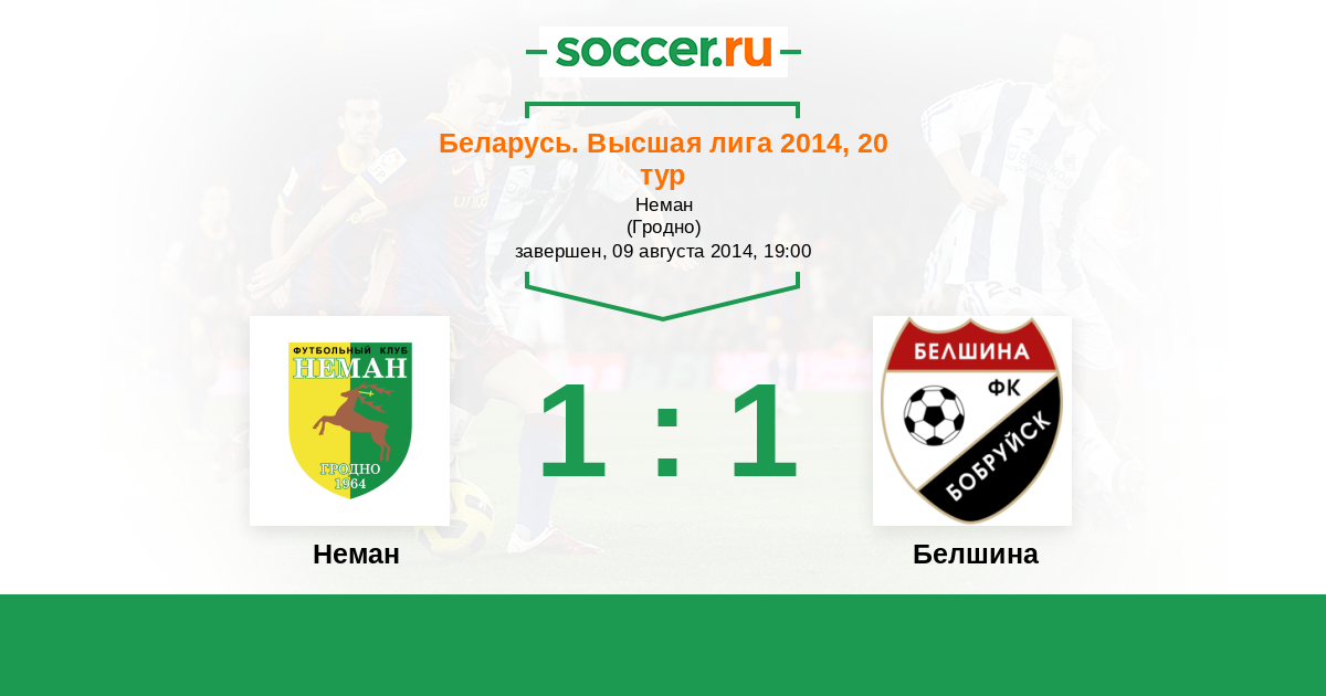 Беларусь. Высшая лига 19.10.2014 Белшина Логотип футбольный клуб Белшина (Бобруйск) 1:3 Логотип футбольный клуб Неман (Гродно) Неман
