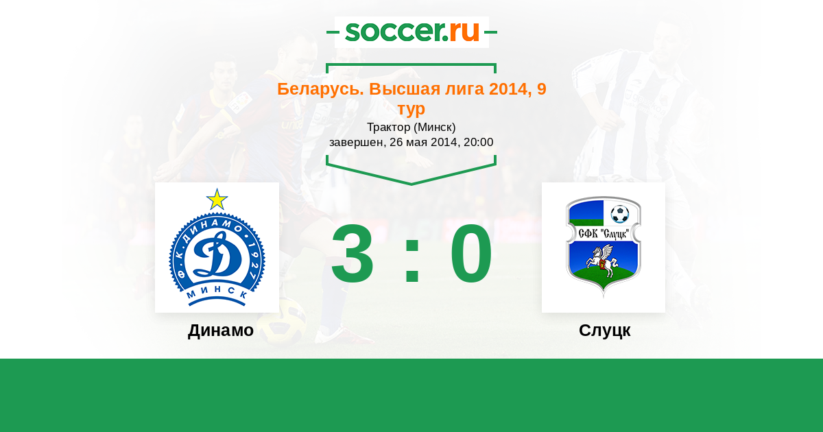 Беларусь. Высшая лига 18.06.2015 Динамо Логотип футбольный клуб Динамо (Минск) 2:0 Логотип футбольный клуб Слуцк Слуцк