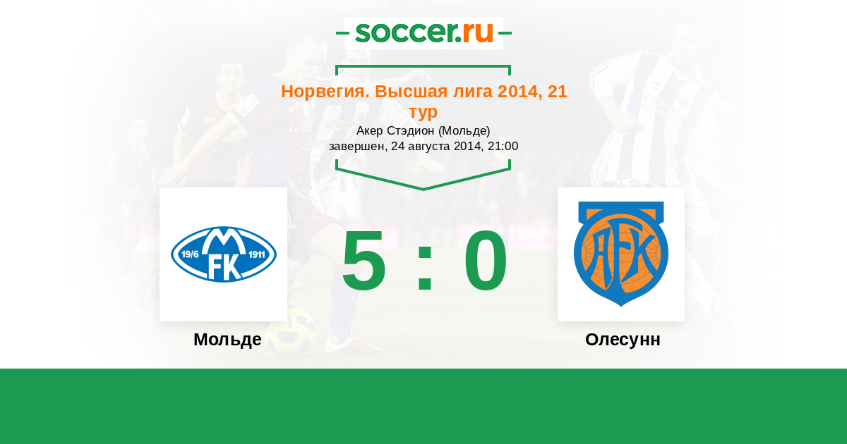 Норвегия. Высшая лига 11.07.2014 Олесунн Логотип футбольный клуб Олесунн 0:1 Логотип футбольный клуб Мольде Мольде