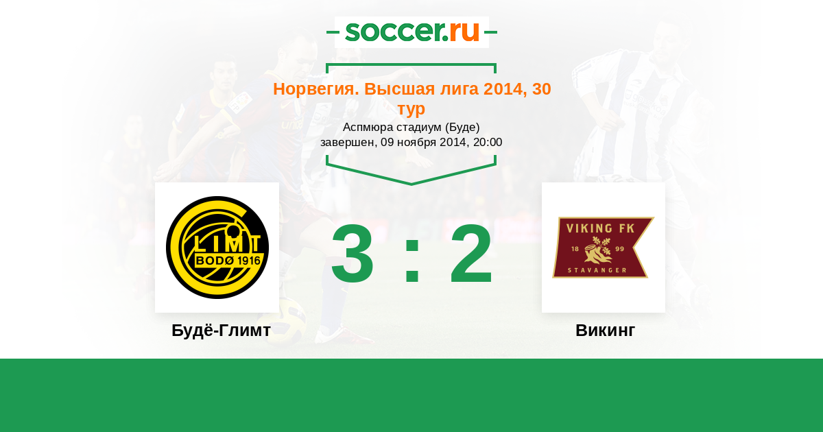 Норвегия. Высшая лига 25.05.2014 Викинг Логотип футбольный клуб Викинг (Ставангер) 2:3 Логотип футбольный клуб Будё-Глимт Будё-Глимт