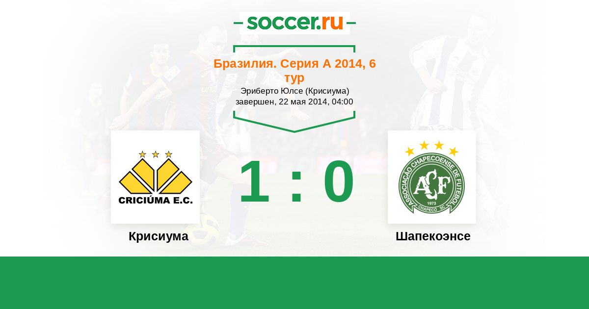 Бразилия. Серия А 28.09.2014 Шапекоэнсе Логотип футбольный клуб Шапекоэнсе 1:1 Логотип футбольный клуб Крисиума Крисиума