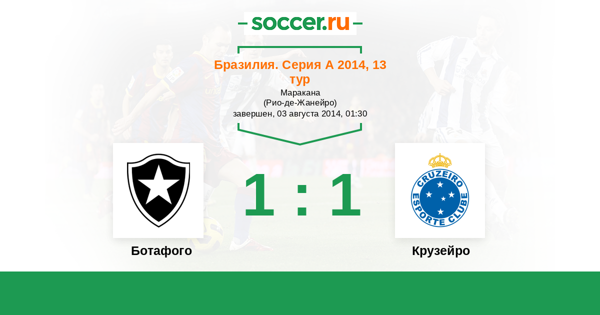 Бразилия. Серия А 01.06.2013 Ботафого Логотип футбольный клуб Ботафого (Рио-де-Жанейро) 2:1 Логотип футбольный клуб Крузейро (Белу-Оризонти) Крузейро