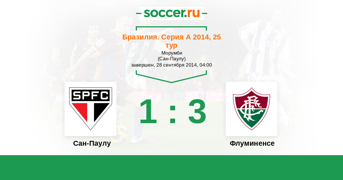 Бразилия. Серия А 22.05.2014 Флуминенсе Логотип футбольный клуб Флуминенсе (Рио-де-Жанейро) 5:2 Логотип футбольный клуб Сан-Паулу Сан-Паулу
