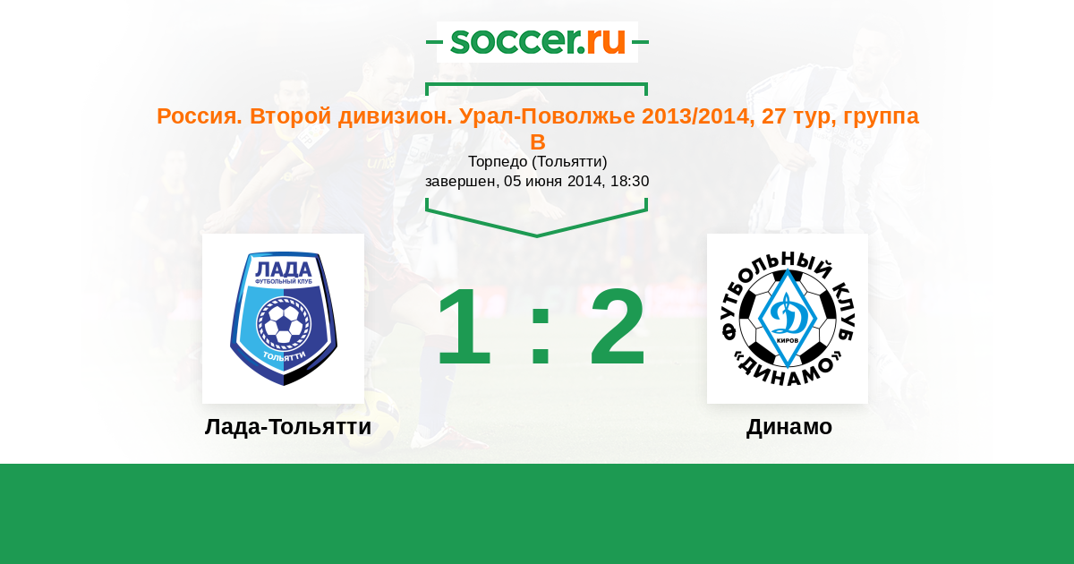 Россия. Вторая лига. Группа 4 07.08.2014 Лада-Тольятти Логотип футбольный клуб Лада-Тольятти 3:1 Логотип футбольный клуб Динамо Киров Динамо Киров