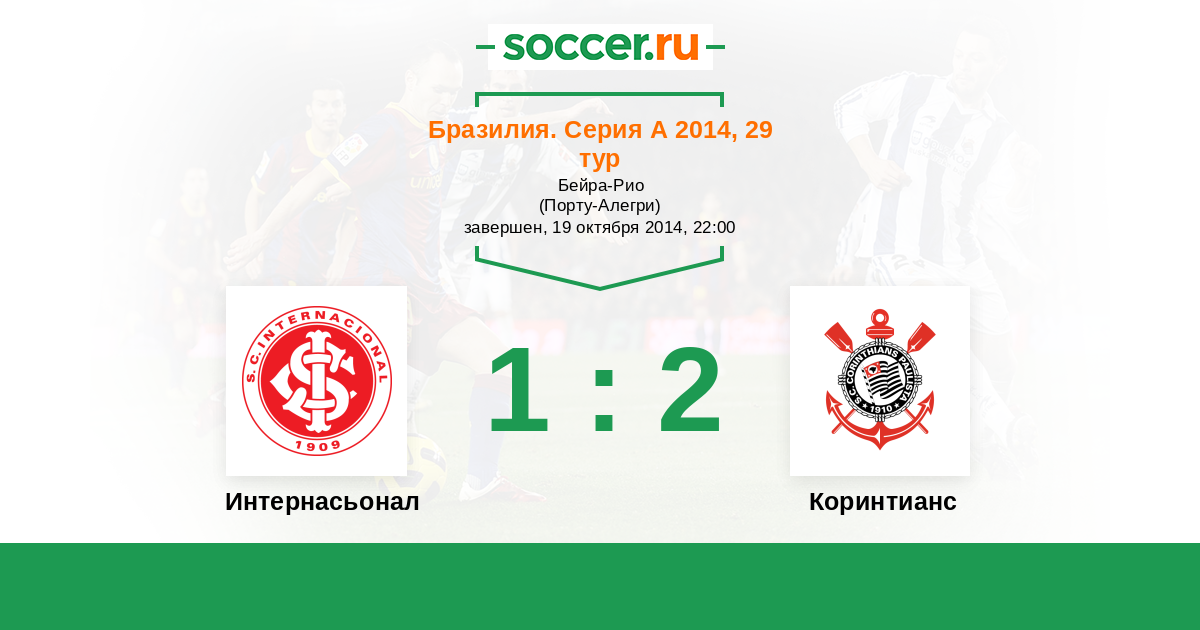 Бразилия. Серия А 18.07.2014 Коринтианс Логотип футбольный клуб Коринтианс (Сан-Паулу) 2:1 Логотип футбольный клуб Интернасьонал (Порту-Алегри) Интернасьонал