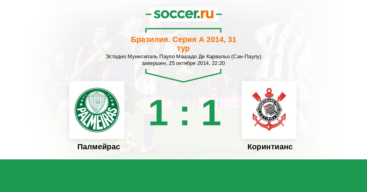 Бразилия. Паулиста А1 16.02.2014 Коринтианс Логотип футбольный клуб Коринтианс (Сан-Паулу) 1:1 Логотип футбольный клуб Палмейрас (Сан-Паулу) Палмейрас
