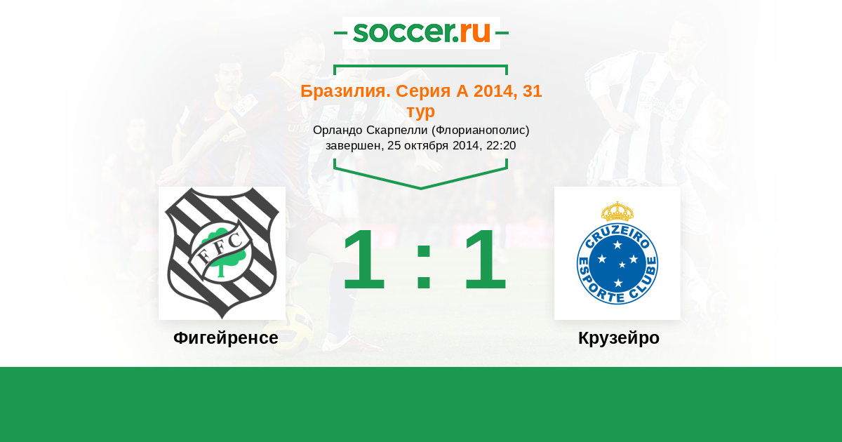 Бразилия. Серия А 27.07.2014 Крузейро Логотип футбольный клуб Крузейро (Белу-Оризонти) 5:0 Логотип футбольный клуб Фигейренсе (Флорианополис) Фигейренсе