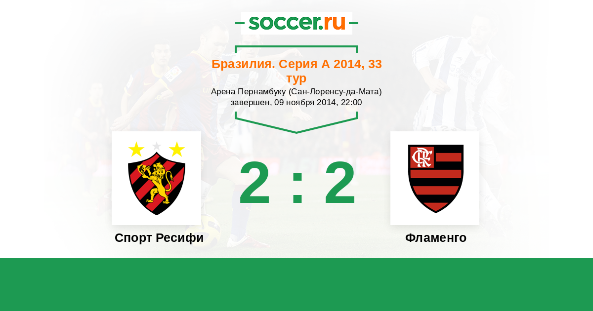 Бразилия. Серия А 17.05.2015 Фламенго Логотип футбольный клуб Фламенго (Рио-де-Жанейро) 2:2 Логотип футбольный клуб Спорт Ресифи Спорт Ресифи