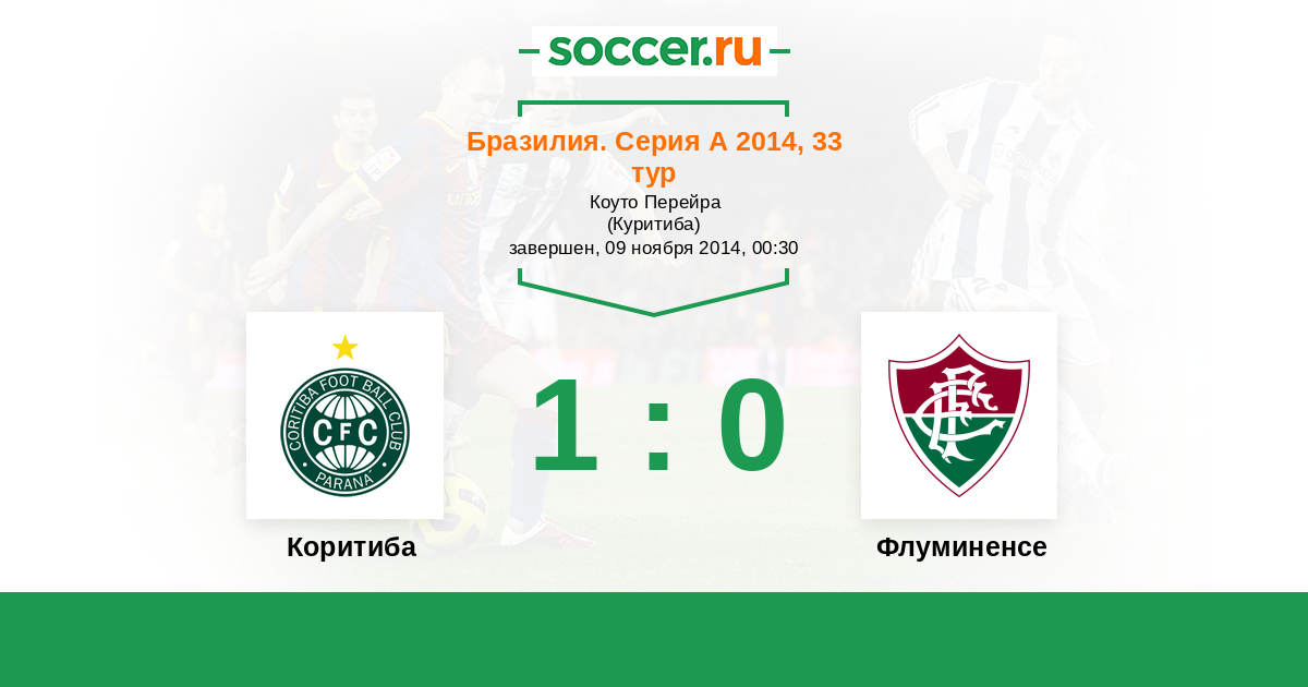 Бразилия. Серия А 10.08.2014 Флуминенсе Логотип футбольный клуб Флуминенсе (Рио-де-Жанейро) 1:1 Логотип футбольный клуб Коритиба Коритиба