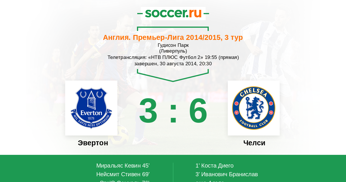 Англия. Премьер-Лига 12.09.2015 Эвертон Логотип футбольный клуб Эвертон (Ливерпуль) 3:1 Логотип футбольный клуб Челси (Лондон) Челси