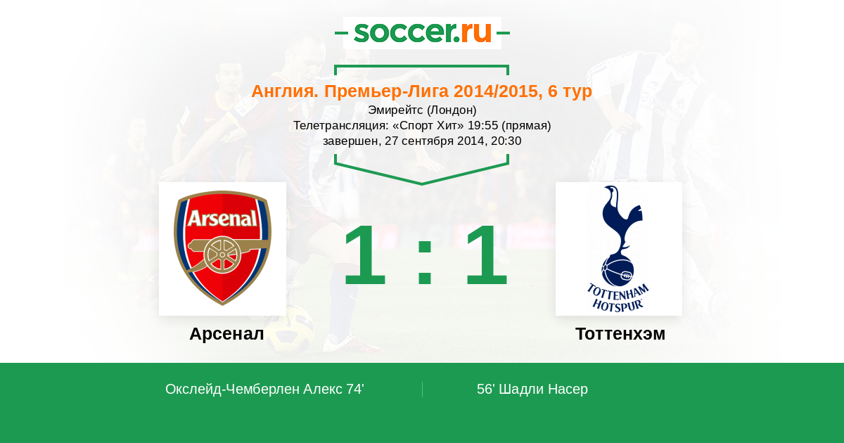 Англия. Премьер-Лига 24.09.2023 Арсенал Логотип футбольный клуб Арсенал (Лондон) 2:2 Логотип футбольный клуб Тоттенхэм (Лондон) Тоттенхэм