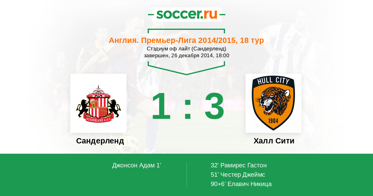 Англия. Премьер-Лига 08.02.2014 Сандерленд Логотип футбольный клуб Сандерленд 0:2 Логотип футбольный клуб Халл Сити (Кингстон-апон-Халл) Халл Сити
