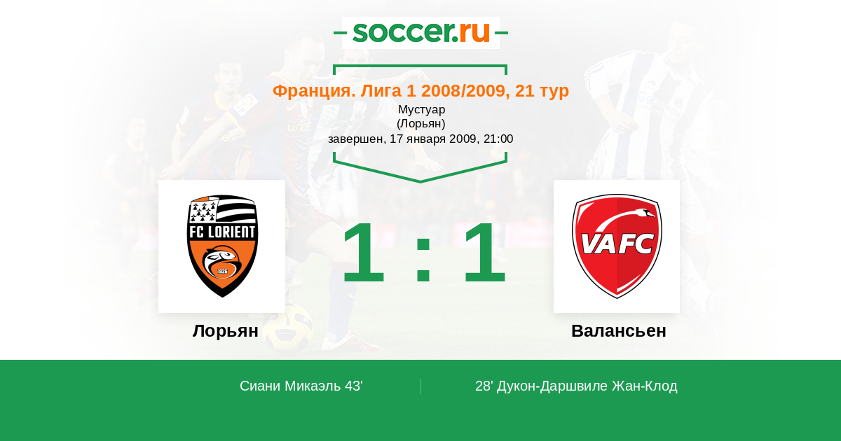 Франция. Лига 1 26.02.2011 Валансьен Логотип футбольный клуб Валансьен 0:0 Логотип футбольный клуб Лорьян Лорьян