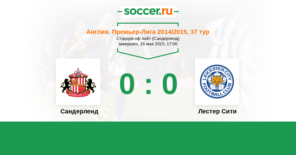 Англия. Премьер-Лига 22.11.2014 Лестер Сити Логотип футбольный клуб Лестер Сити 0:0 Логотип футбольный клуб Сандерленд Сандерленд