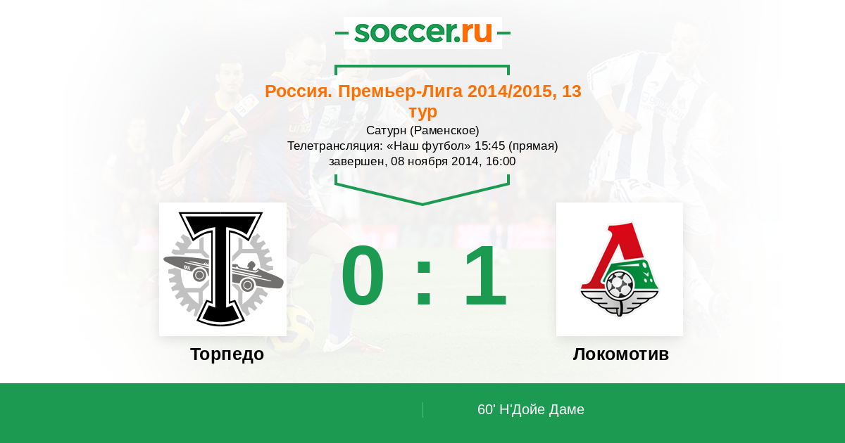Россия. Премьер-Лига 08.04.2015 Локомотив Логотип футбольный клуб Локомотив (Москва) 2:0 Логотип футбольный клуб Торпедо (Москва) Торпедо