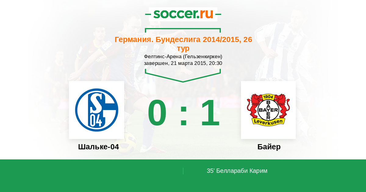 Германия. Бундеслига 29.11.2015 Байер Логотип футбольный клуб Байер (Леверкузен) 1:1 Логотип футбольный клуб Шальке-04 (Гельзенкирхен) Шальке-04