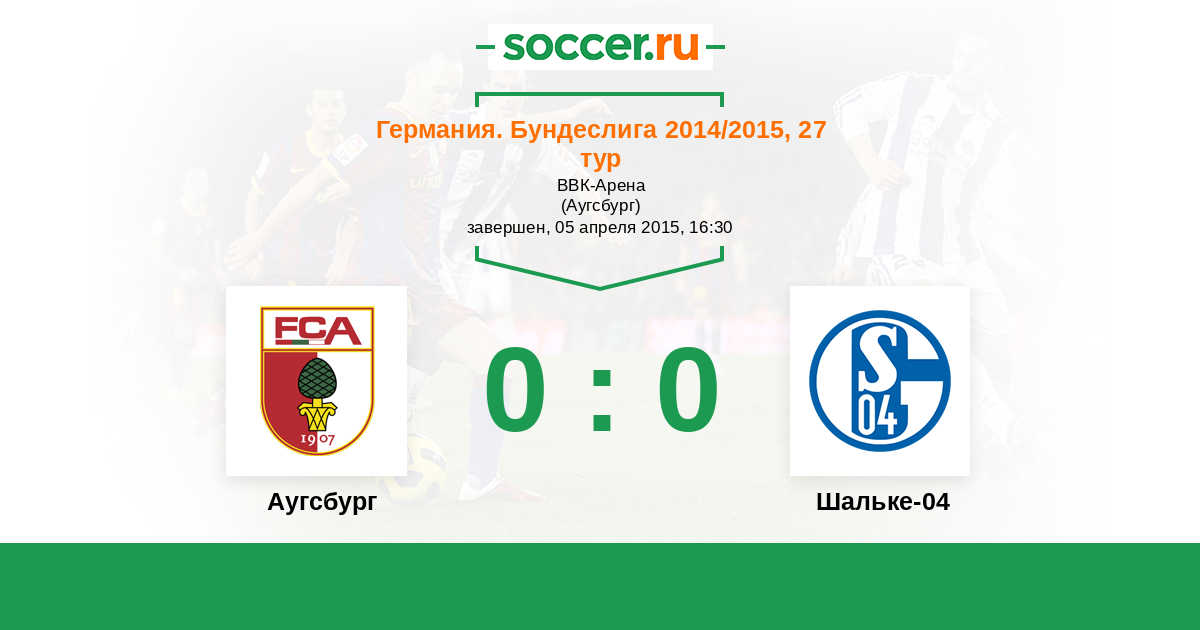 Германия. Бундеслига 31.10.2014 Шальке-04 Логотип футбольный клуб Шальке-04 (Гельзенкирхен) 1:0 Логотип футбольный клуб Аугсбург Аугсбург