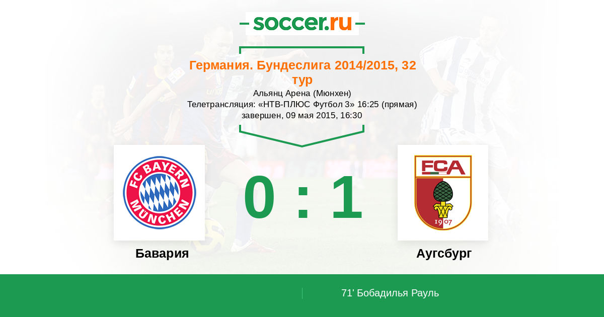 Германия. Бундеслига 13.12.2014 Аугсбург Логотип футбольный клуб Аугсбург 0:4 Логотип футбольный клуб Бавария (Мюнхен) Бавария