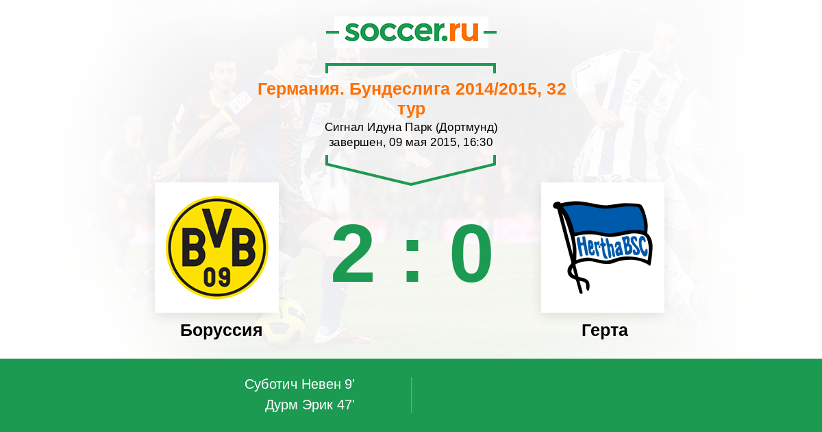 Германия. Бундеслига 10.05.2014 Герта Логотип футбольный клуб Герта (Берлин) 0:4 Логотип футбольный клуб Боруссия (Дортмунд) Боруссия