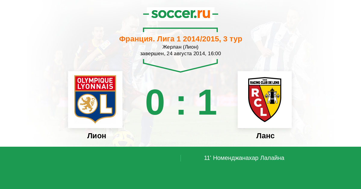 Франция. Лига 1 17.01.2015 Ланс Логотип футбольный клуб Ланс 0:2 Логотип футбольный клуб Лион Лион