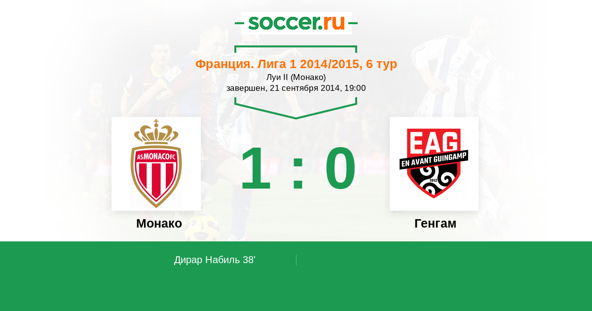 Франция. Лига 1 27.09.2015 Генгам Логотип футбольный клуб Генгам 3:3 Логотип футбольный клуб Монако Монако