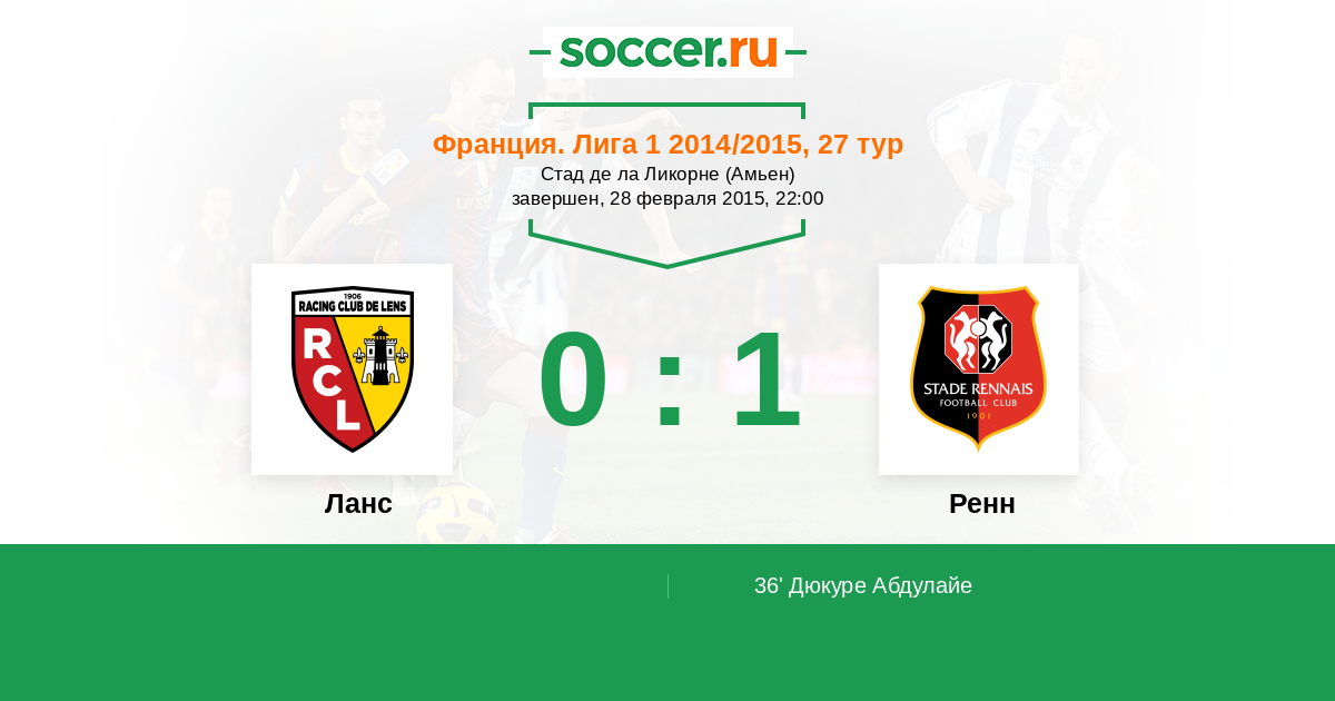 Франция. Лига 1 04.10.2014 Ренн Логотип футбольный клуб Ренн 2:0 Логотип футбольный клуб Ланс Ланс