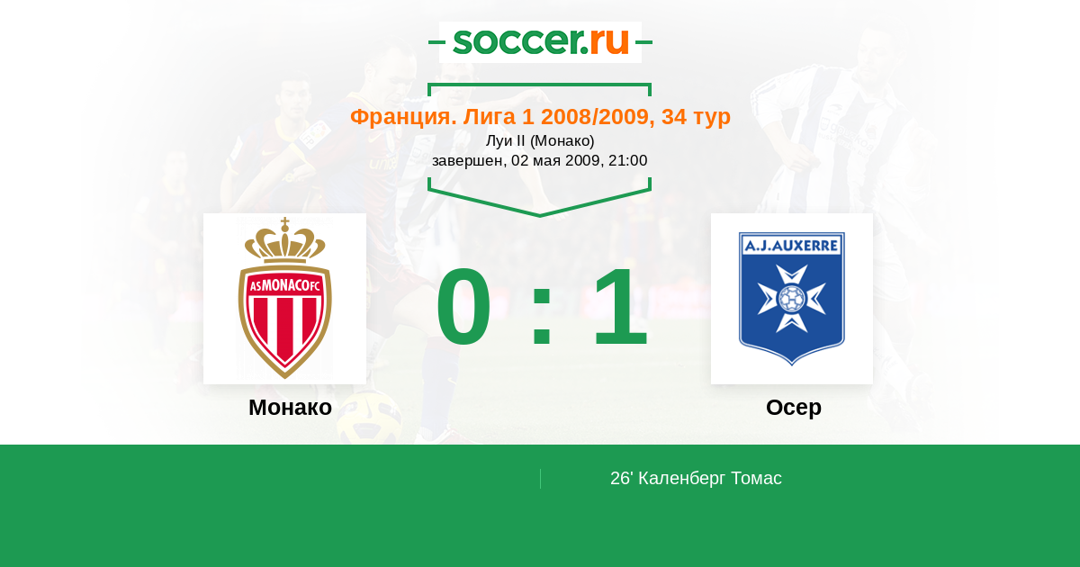 Франция. Лига 1 10.05.2008 Монако Логотип футбольный клуб Монако 3:0 Логотип футбольный клуб Осер Осер