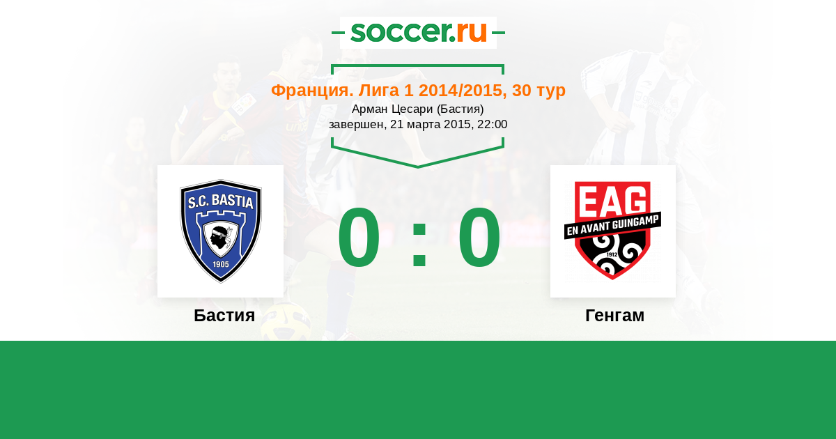 Франция. Лига 1 01.11.2014 Генгам Логотип футбольный клуб Генгам 1:0 Логотип футбольный клуб Бастия Бастия