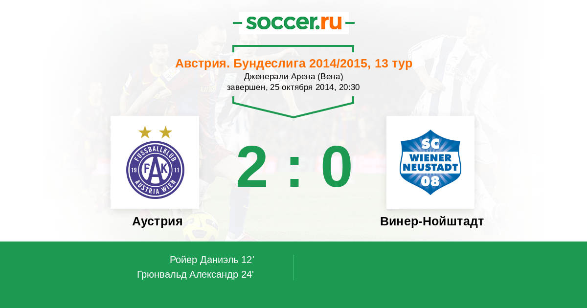 Австрия. Бундеслига 28.02.2015 Винер-Нойштадт Логотип футбольный клуб Винер-Нойштадт 1:0 Логотип футбольный клуб Аустрия (Вена) Аустрия