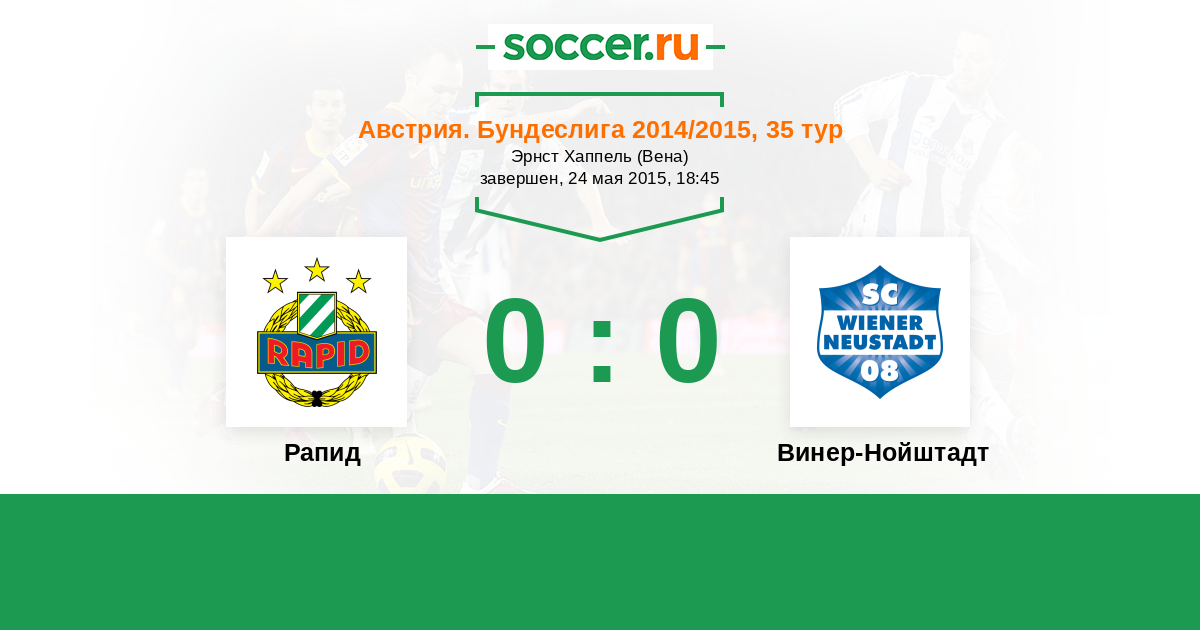 Австрия. Бундеслига 22.03.2015 Винер-Нойштадт Логотип футбольный клуб Винер-Нойштадт 0:1 Логотип футбольный клуб Рапид (Вена) Рапид