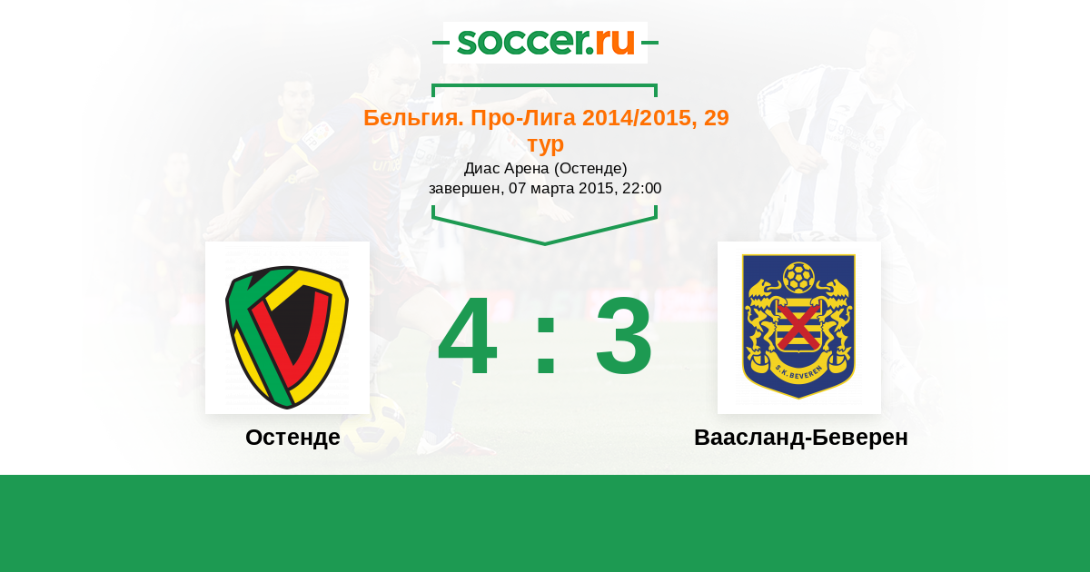 Бельгия. Про-Лига 01.11.2014 Ваасланд-Беверен Логотип футбольный клуб Ваасланд-Беверен 1:0 Логотип футбольный клуб Остенде Остенде