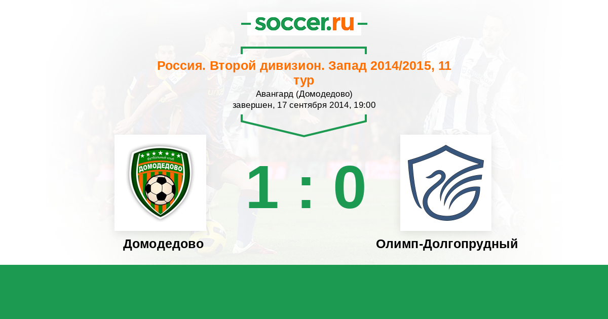 Россия. Вторая лига. Группа 2 08.09.2015 Долгопрудный Логотип футбольный клуб Долгопрудный 2:1 Логотип футбольный клуб Домодедово (Москва) Домодедово