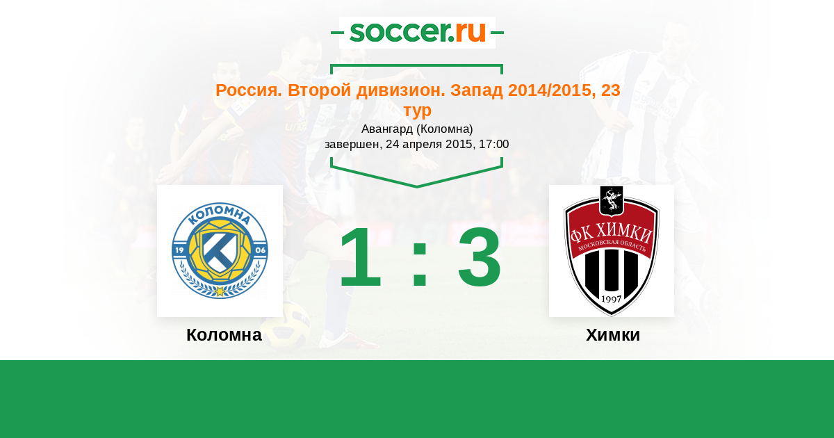 Россия. Вторая лига. Группа 2 12.08.2015 Коломна Логотип футбольный клуб Коломна 1:2 Логотип футбольный клуб Химки Химки