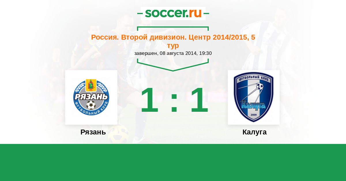Россия. Вторая лига. Группа 3 17.08.2015 Калуга Логотип футбольный клуб Калуга 0:1 Логотип футбольный клуб Рязань Рязань