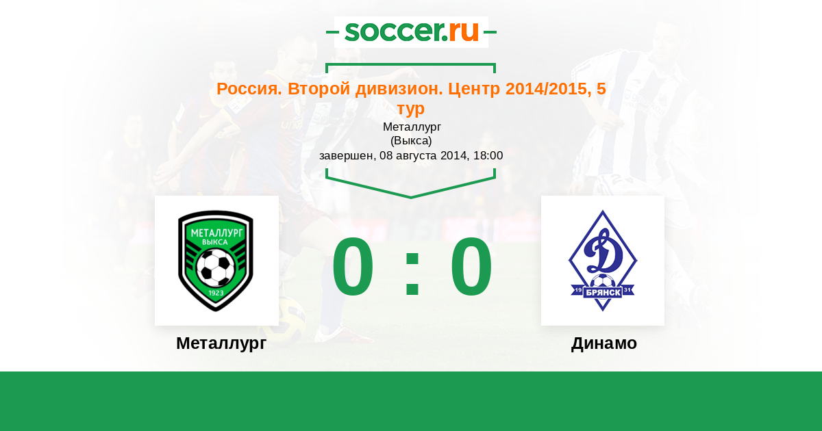 Россия. Вторая лига. Группа 3 02.05.2014 Динамо Брянск Логотип футбольный клуб Динамо Брянск 2:0 Логотип футбольный клуб Металлург (Выкса) Металлург