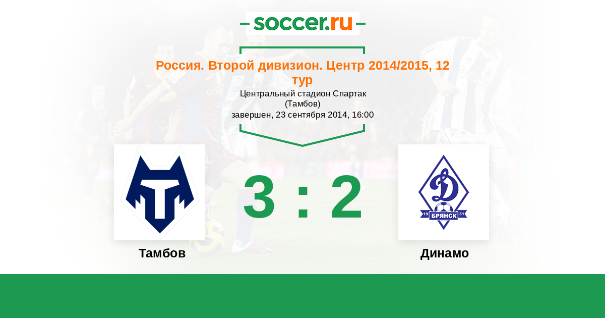 Россия. Вторая лига. Группа 3 14.09.2015 Динамо Брянск Логотип футбольный клуб Динамо Брянск 1:2 Логотип футбольный клуб Тамбов Тамбов