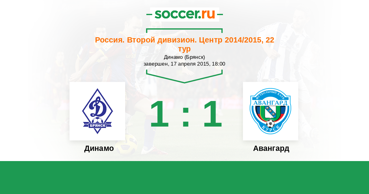 Россия. Вторая лига. Группа 3 04.10.2015 Авангард Логотип футбольный клуб Авангард (Курск) 2:2 Логотип футбольный клуб Динамо Брянск Динамо Брянск