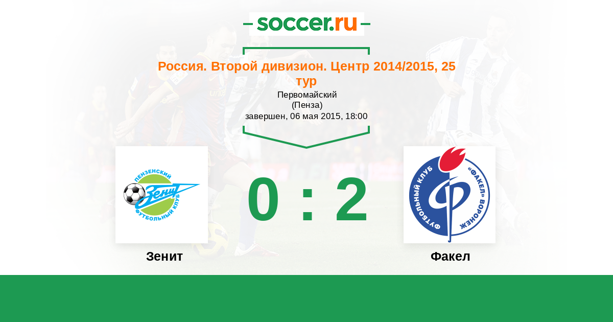 Россия. Вторая лига. Группа 3 08.05.2014 Факел Логотип футбольный клуб Факел (Воронеж) 2:0 Логотип футбольный клуб Зенит (Пенза) Зенит