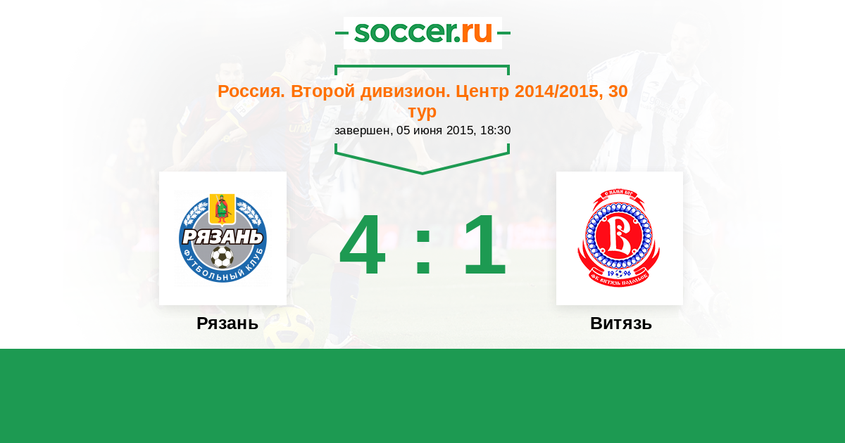 Россия. Вторая лига. Группа 3 12.07.2014 Витязь Логотип футбольный клуб Витязь (Подольск) 0:0 Логотип футбольный клуб Рязань Рязань