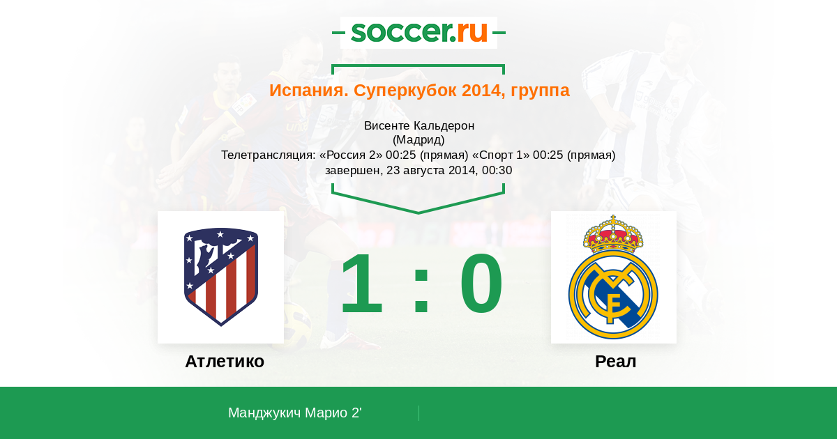 Испания. Суперкубок 20.08.2014 Реал Логотип футбольный клуб Реал (Мадрид) 1:1 Логотип футбольный клуб Атлетико (Мадрид) Атлетико