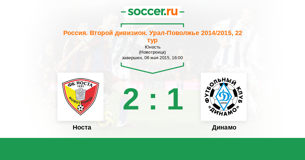 Россия. Вторая лига. Группа 4 05.06.2015 Динамо Киров Логотип футбольный клуб Динамо Киров 1:1 Логотип футбольный клуб Носта (Новотроицк) Носта