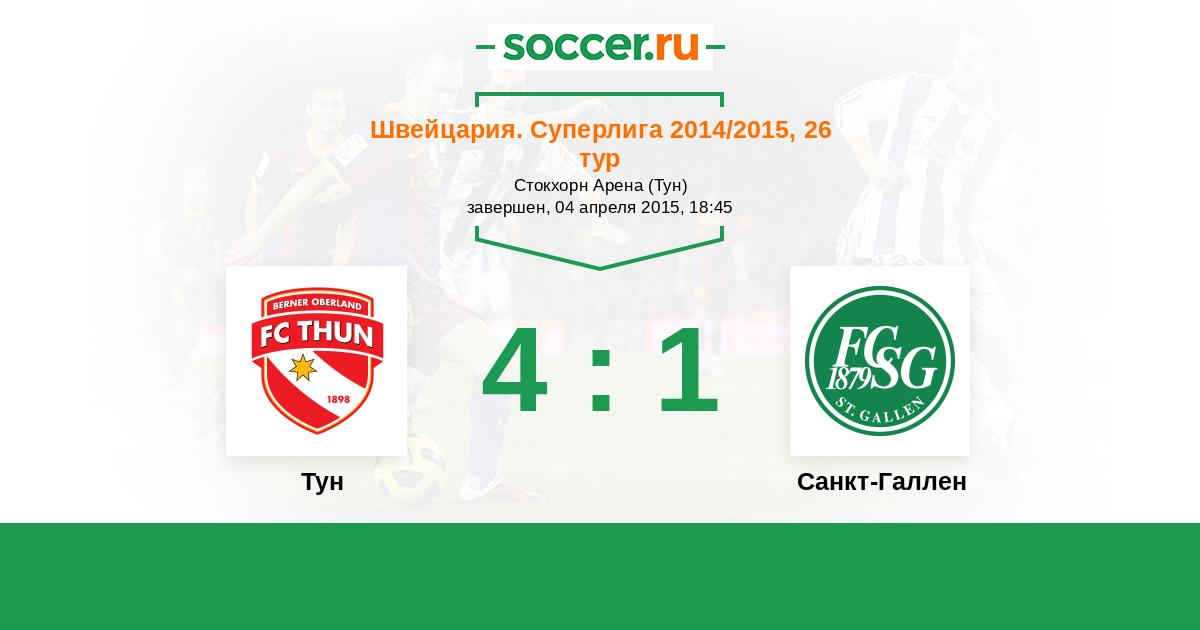 Швейцария. Суперлига 27.04.2014 Тун Логотип футбольный клуб Тун 4:0 Логотип футбольный клуб Санкт-Галлен Санкт-Галлен